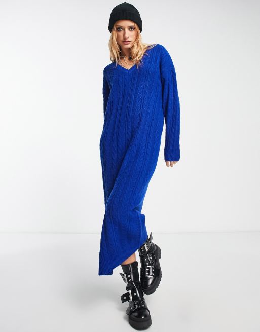ASOS DESIGN knitted maxi sweater dress in cable in blue