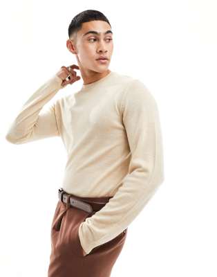 ASOS DESIGN knitted merino wool sweater in stone