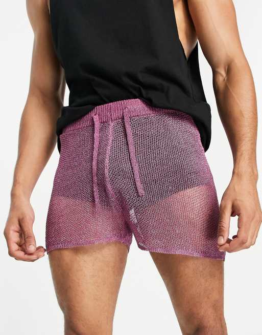 ASOS DESIGN knitted metallic shorts in purple - part of a set