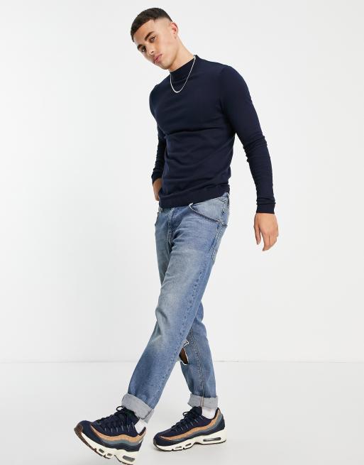 ASOS DESIGN knitted muscle fit turtle neck sweater in navy