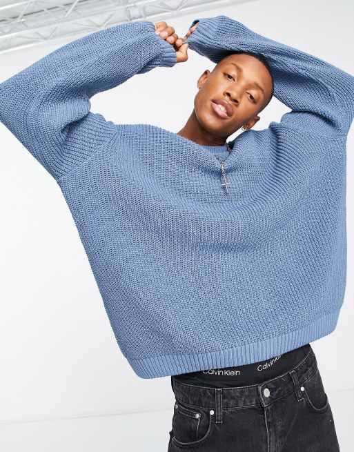 ASOS DESIGN knitted oversized fisherman rib sweater in blue