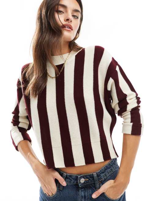 ASOS DESIGN knitted oversized sweater in wine stripe