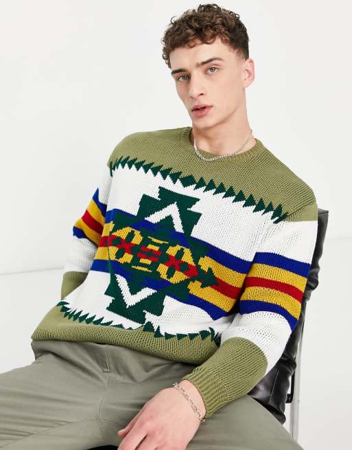 ASOS DESIGN knitted pattern sweater in khaki