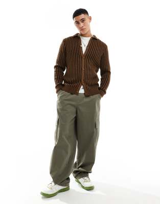 ASOS DESIGN knitted plated rib cardigan in brown