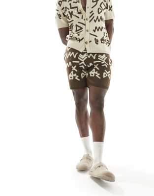 ASOS DESIGN knitted shorts in brown with stone all over pattern - part of a set