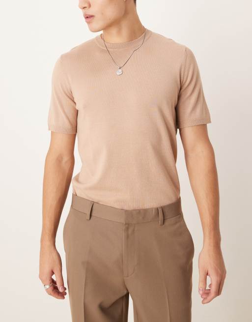 ASOS DESIGN knitted t-shirt in stone - part of a set