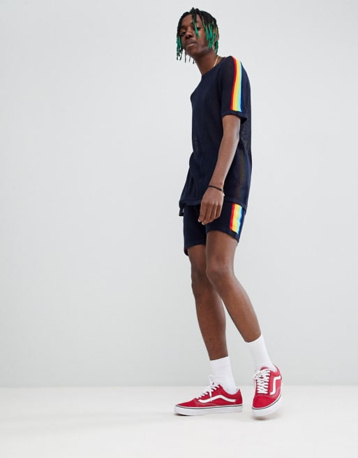 ASOS DESIGN knitted two-piece with rainbow stripe in navy