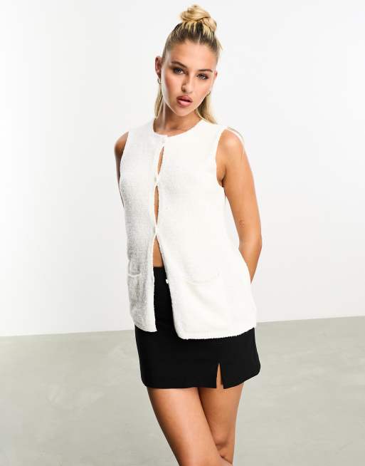 ASOS DESIGN knitted vest with pockets in ecru