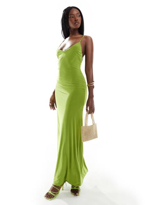 ASOS DESIGN knotted strap cami midi dress in lime