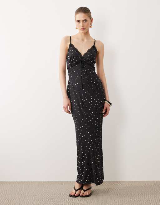 ASOS DESIGN lace detailing polka dot mesh cami dress