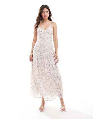 ASOS DESIGN lace insert paneled midi dress in lilac ditsy floral print