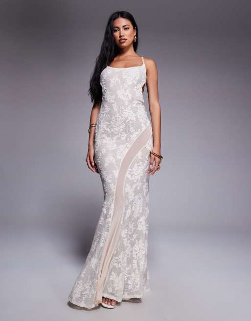 ASOS DESIGN lace maxi dress with mesh insert in cream