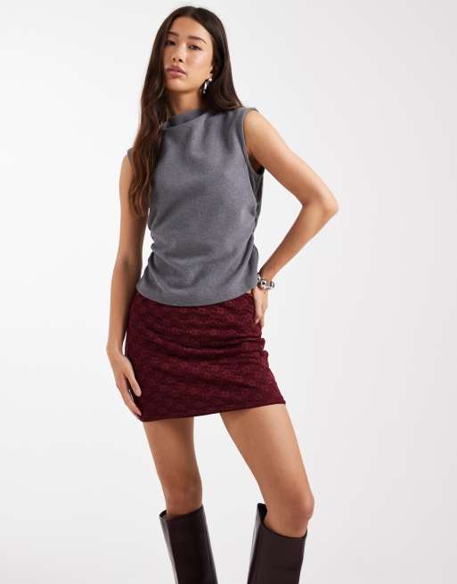 ASOS DESIGN lace mini skirt in burgundy