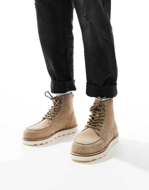 ASOS DESIGN lace up boots in tone suede with contrast sole