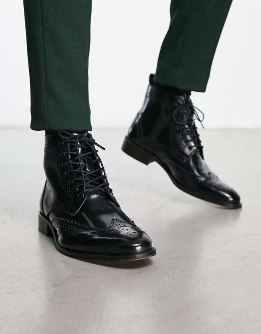 ASOS DESIGN lace-up boots with brogue detail in black leather