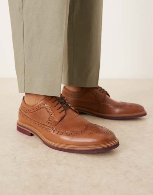 ASOS DESIGN lace-up brogue shoes in tan leather