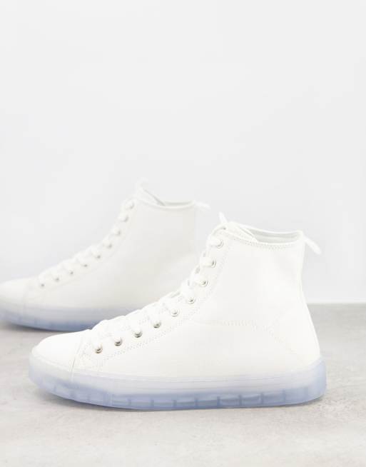 ASOS DESIGN lace up canvas sneakers in white with blue transparent sole