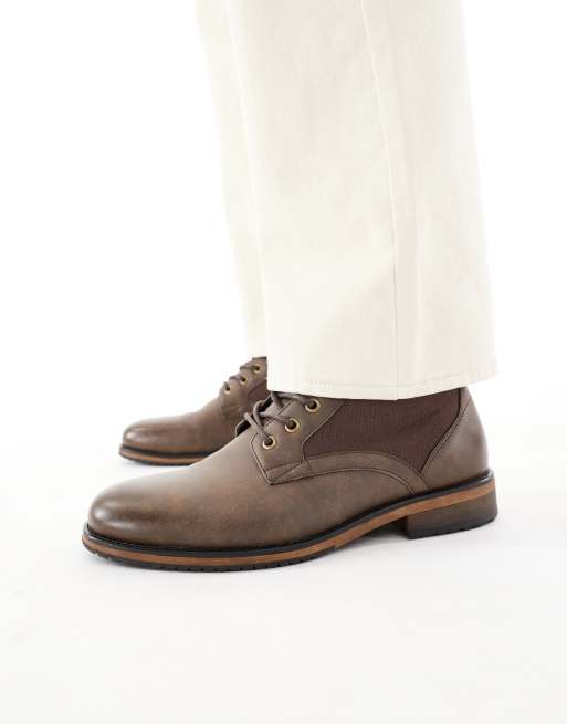 ASOS DESIGN lace up worker boots in brown with canvas detail
