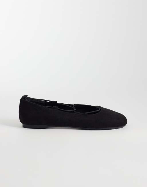 ASOS DESIGN Lance elasticized ballet flats in black suedette