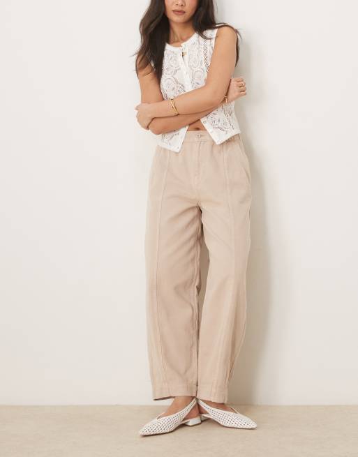 ASOS DESIGN laundered pull on pants with seam details in washed stone