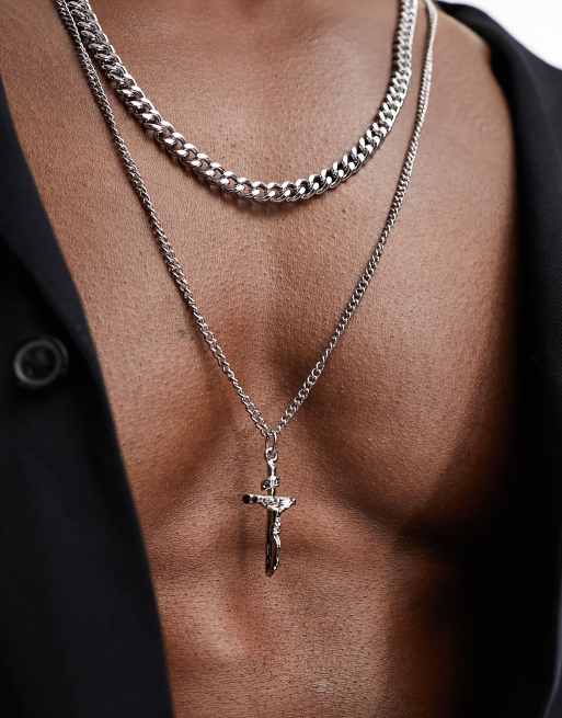 ASOS DESIGN layered neck chain with cross in silver tone