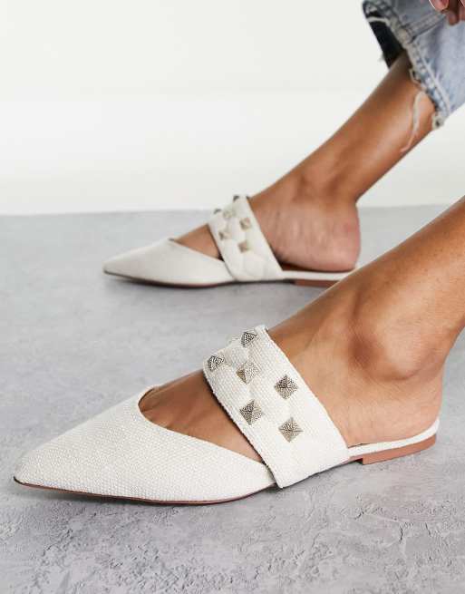ASOS DESIGN Leah studded point ballet mules in natural fabrication