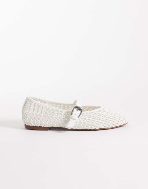ASOS DESIGN Leah weave mary jane ballet flats in white