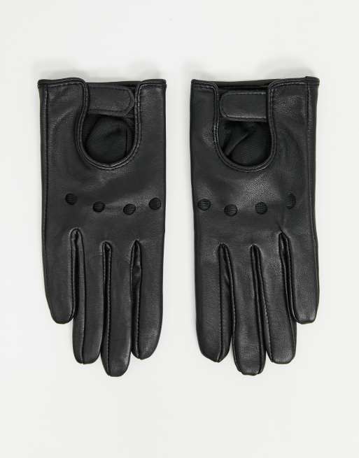 ASOS DESIGN leather plain cutout gloves with touch screen in black