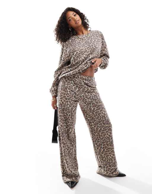 ASOS DESIGN leopard print wide leg sweatpants in brown