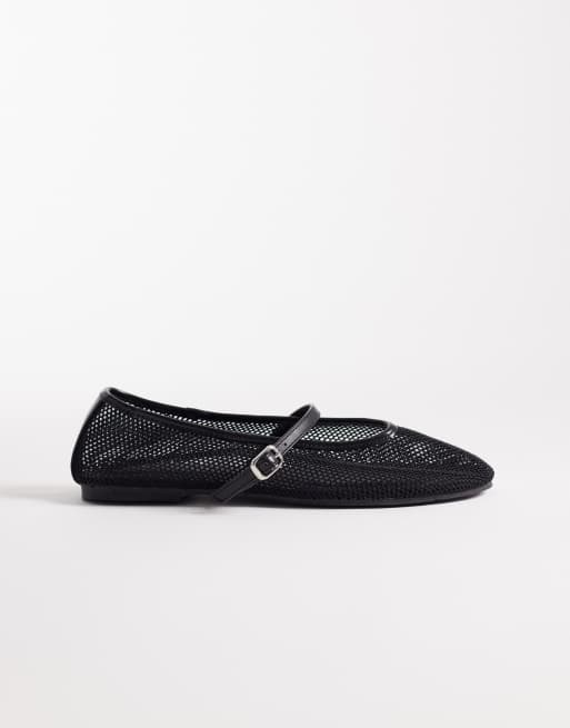 ASOS DESIGN Libra mesh mary jane ballet flats in black