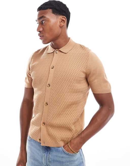 ASOS DESIGN lightweight knit shirt in brown