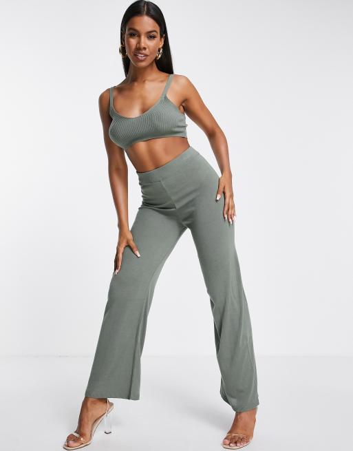 ASOS DESIGN lightweight knit wide leg beach pant in khaki - part of a set