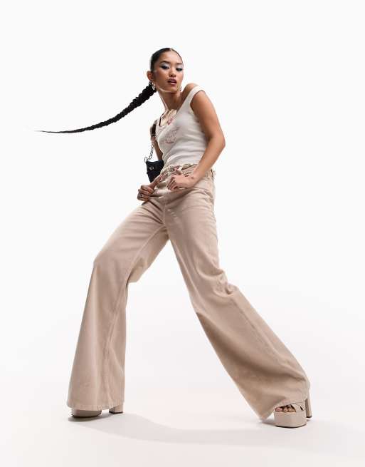 ASOS DESIGN lightweight wide leg jeans in mushroom