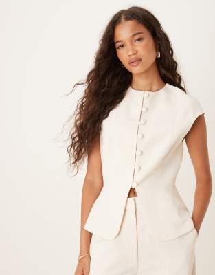 ASOS DESIGN linen blend cap sleeve vest in ivory