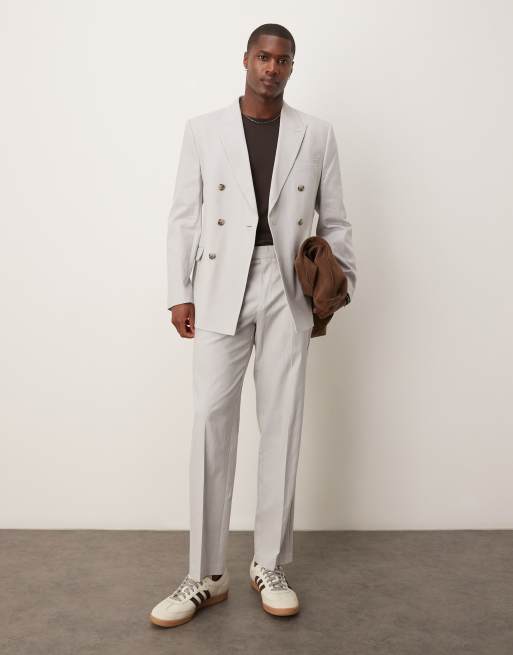 ASOS DESIGN linen blend double breasted regular suit in pebble