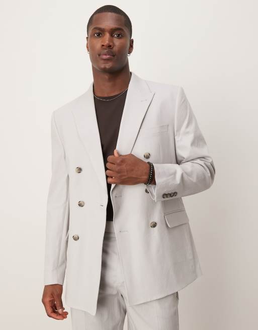 ASOS DESIGN linen blend double breasted regular suit jacket in pebble