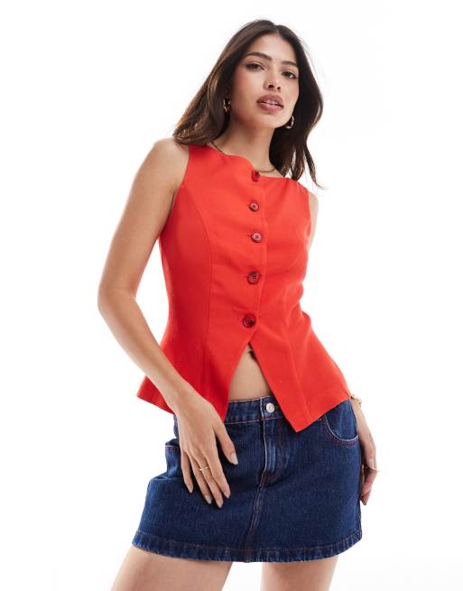 ASOS DESIGN linen blend longline vest in red