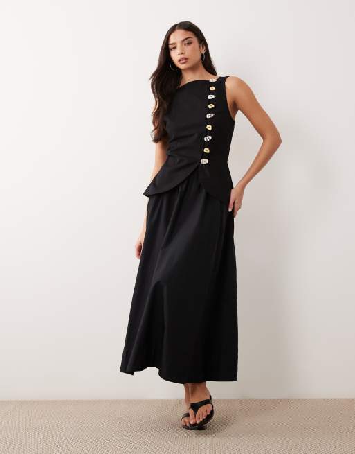 ASOS DESIGN linen blend maxi vest dress with poplin skirt in black