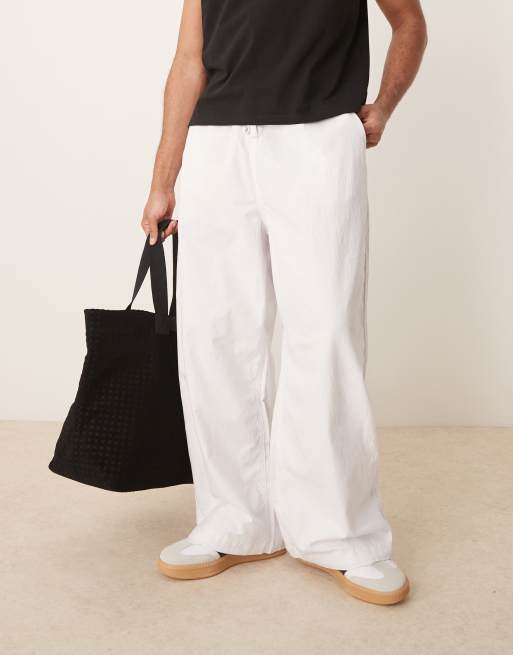 ASOS DESIGN linen blend parachute pants in white
