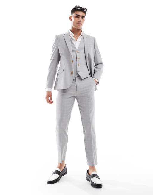 ASOS DESIGN linen blend skinny suit in gray tonal check