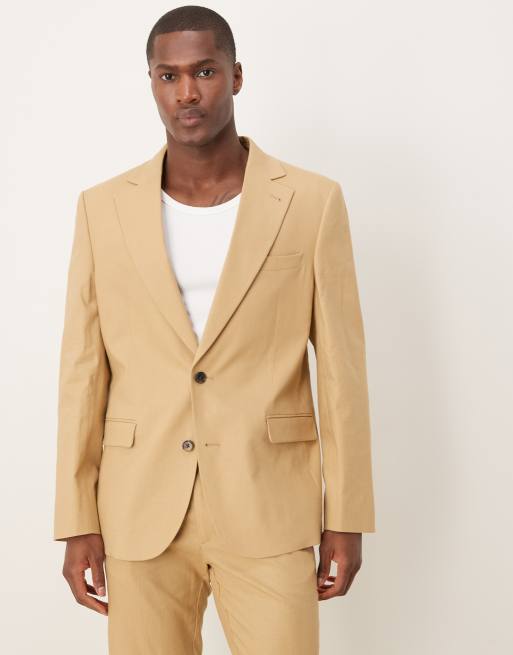 ASOS DESIGN linen blend slim suit jacket in beige