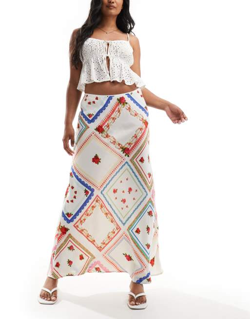 ASOS DESIGN linen-look bias cut maxi skirt in picnic print - part of a set