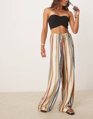 ASOS DESIGN linen look pull on pants in multicolor stripe