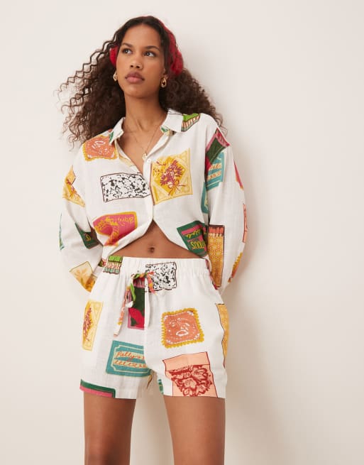 ASOS DESIGN linen look shirt and shorts set in matchbox print