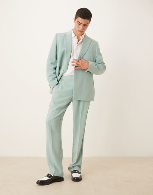 ASOS DESIGN linen-look straight leg pants in blue twill