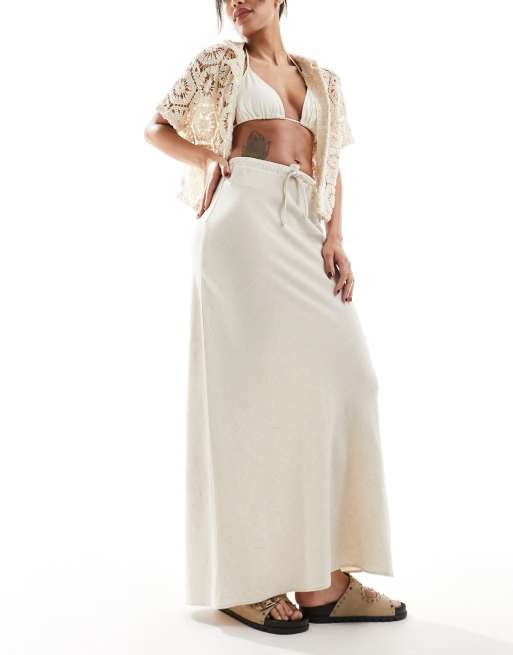 ASOS DESIGN linen look tie waist bias cut maxi skirt in natural
