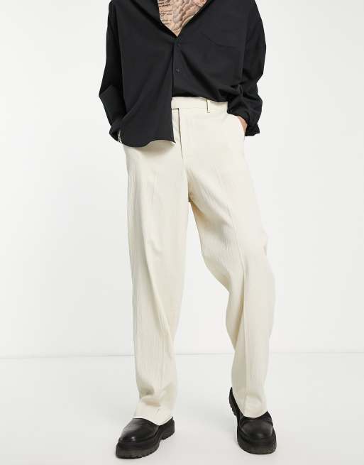 ASOS DESIGN linen mix wide leg smart pants in ecru crinkle