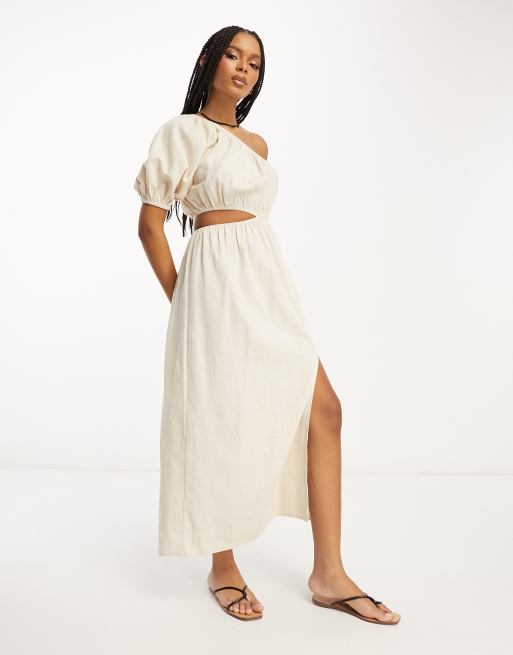 ASOS DESIGN linen one shoulder midi dress in natural