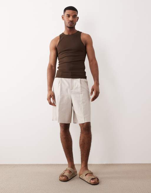 ASOS DESIGN linen rich bermuda dress shorts in stone