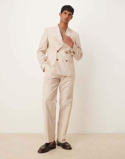 ASOS DESIGN linen slim suit in stone stripe